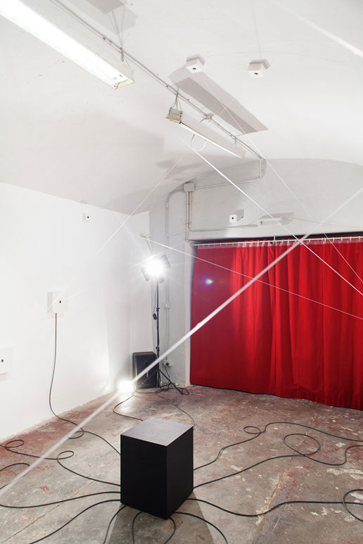 It is a system of ten strings anchored to the walls of a room, that rework the architecture into a tangle that changes the perspective through visual, tactile and auditory sensation.