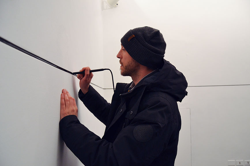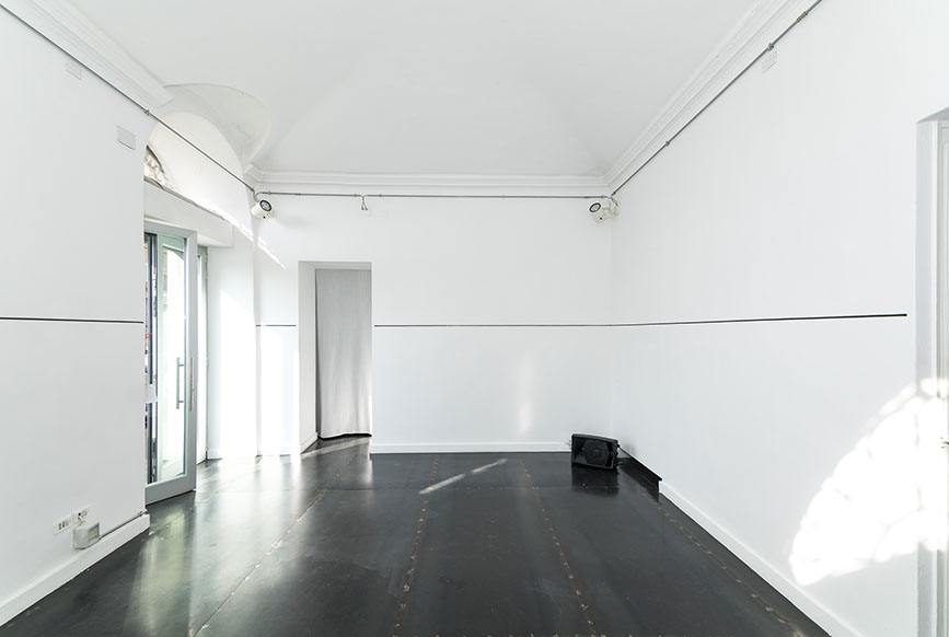As when we discover or find an ancient and unknown writing, and we need to understand the alphabet with which it was written, the reading sense, the language and finally its content, in this work an effort is similarly required to decode its meaning. A magnetic tape embedded in the wall encloses the answer to the question: "What if the walls could speak?". The viewer is required to make an effort to try to understand the meaning of the engraved text through the use of a "stylus" whose tip is equipped with a magnetic tape head. By passing the stylus over the tape in the wall, the recorded sound is reproduced with an amplification system to which the reading pen is connected. It is up to the hand and the sensitivity of those who handle the stylus to find the right speed and the sense of reading. The groove on the wall traces the environment seamlessly, losing the concept of beginning and end, of writing direction, of codes and forms. Everything becomes circular, the idea of time becomes absurd and therefore it disappears, since, conceptually, every point of this wall is a beginning, and every point is an end.
