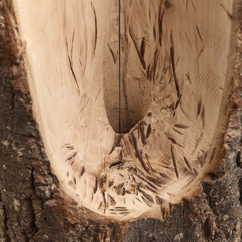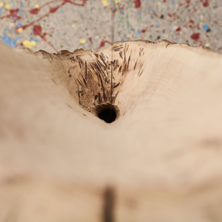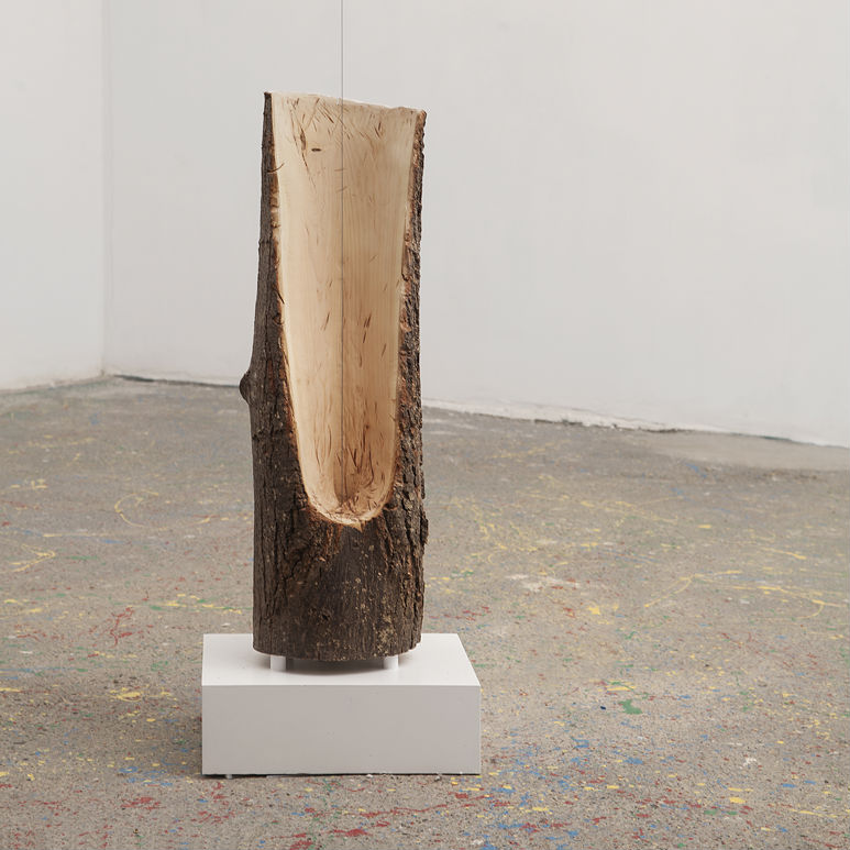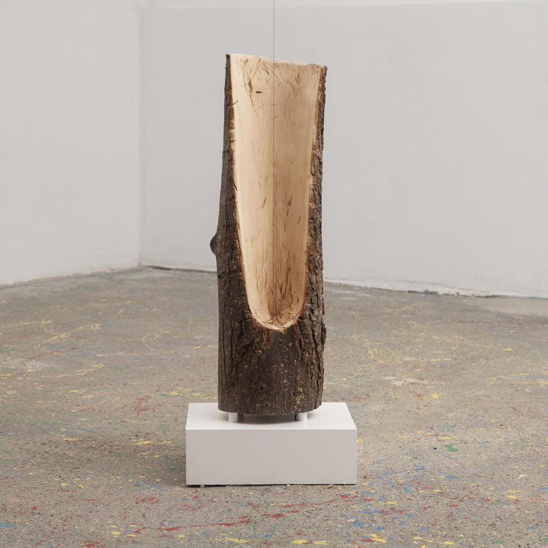 Il fruitore si trova davanti a una scultura interattiva e sonora, costituita da una sezione di tronco scavato, dal cui centro si dipana un cavo d'acciaio che si tende fino al soffitto dell'ambiente in cui è posto.