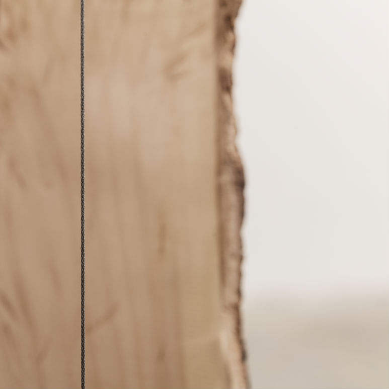 Touching the cable (tapping it, pinching it, striking it, etc.), the object comes to life, echoing the vibration of the string, in a potentially infinite loop. The more people touch the rope, the more the sounds will add up and overlap, creating a harmony of sound repetitions that will fill the surrounding space with the sum of the absorbed actions.